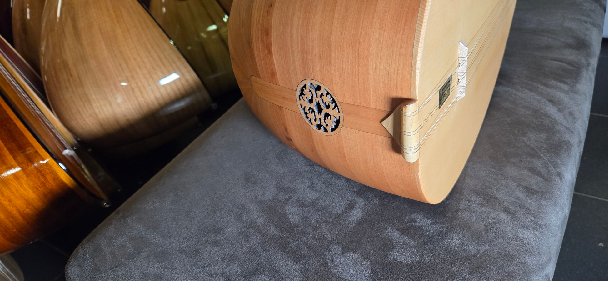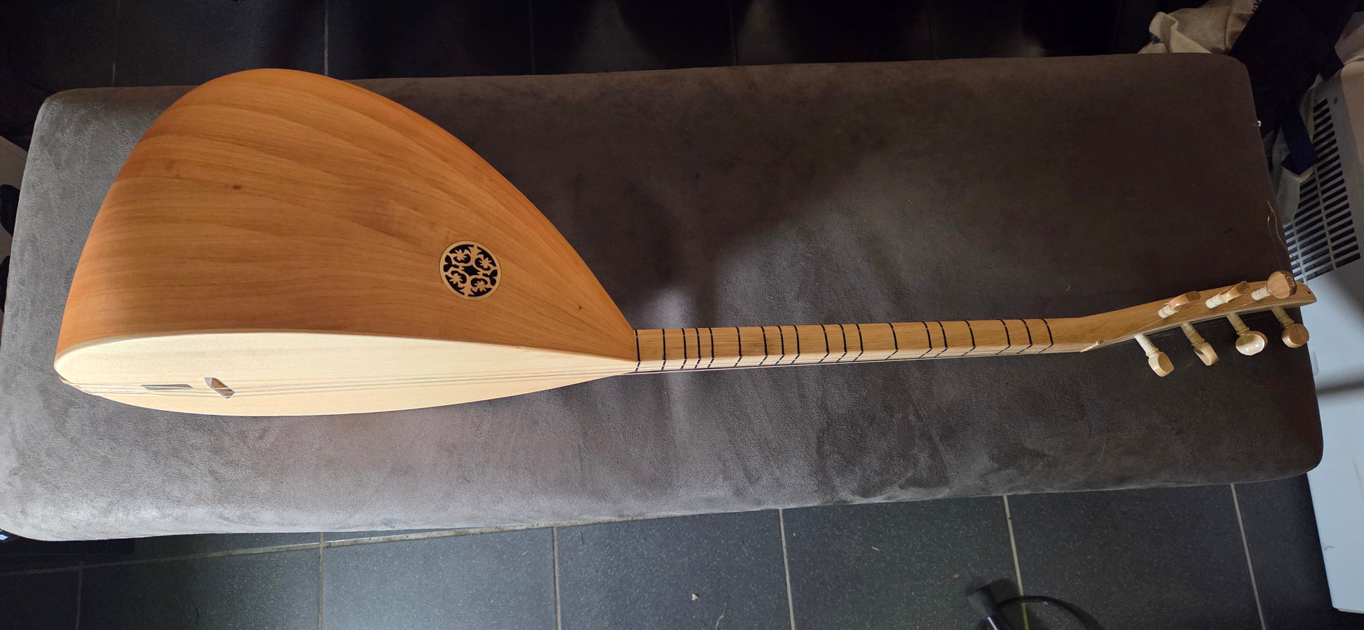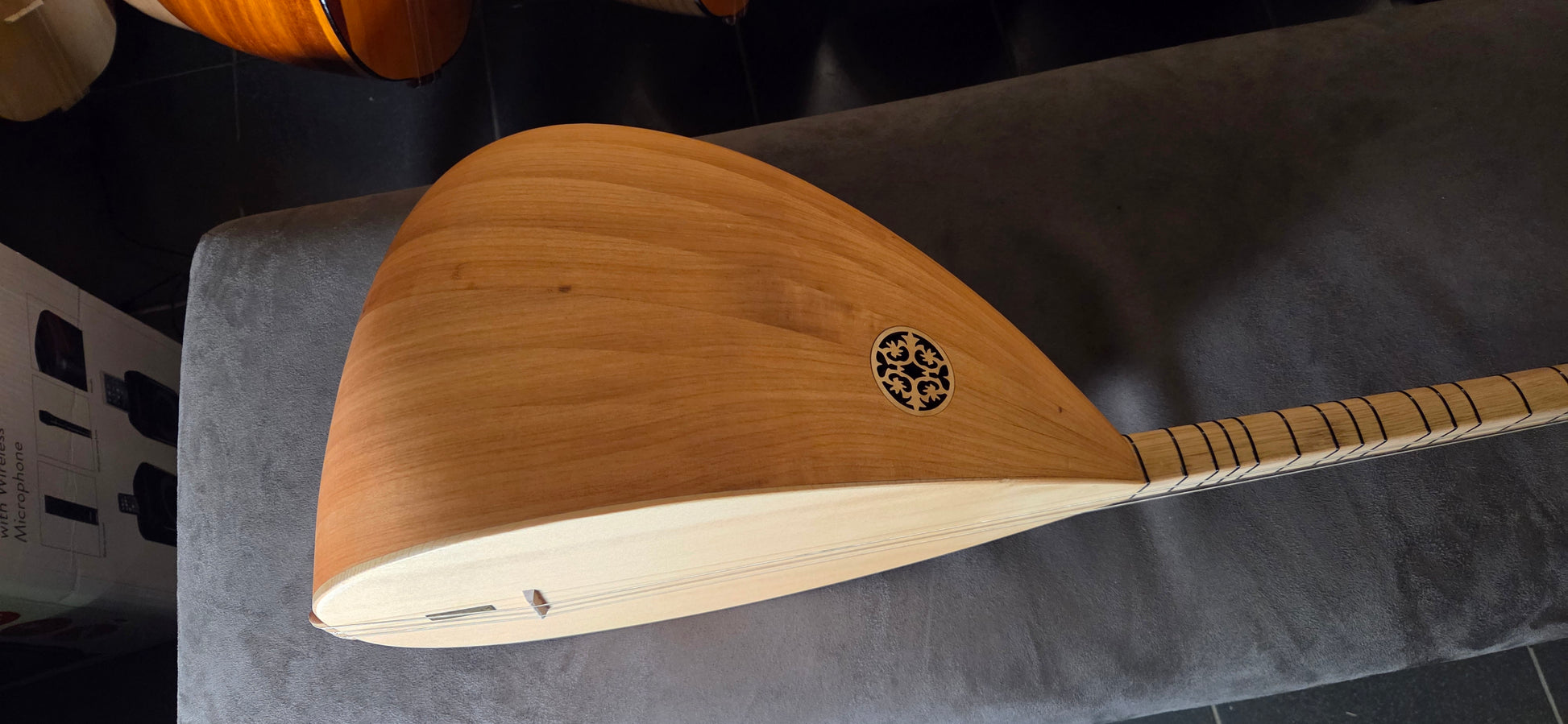 Een saz wordt voor verzending een laatste keer gestemd en gecontroleerd voordat deze wordt ingepakt