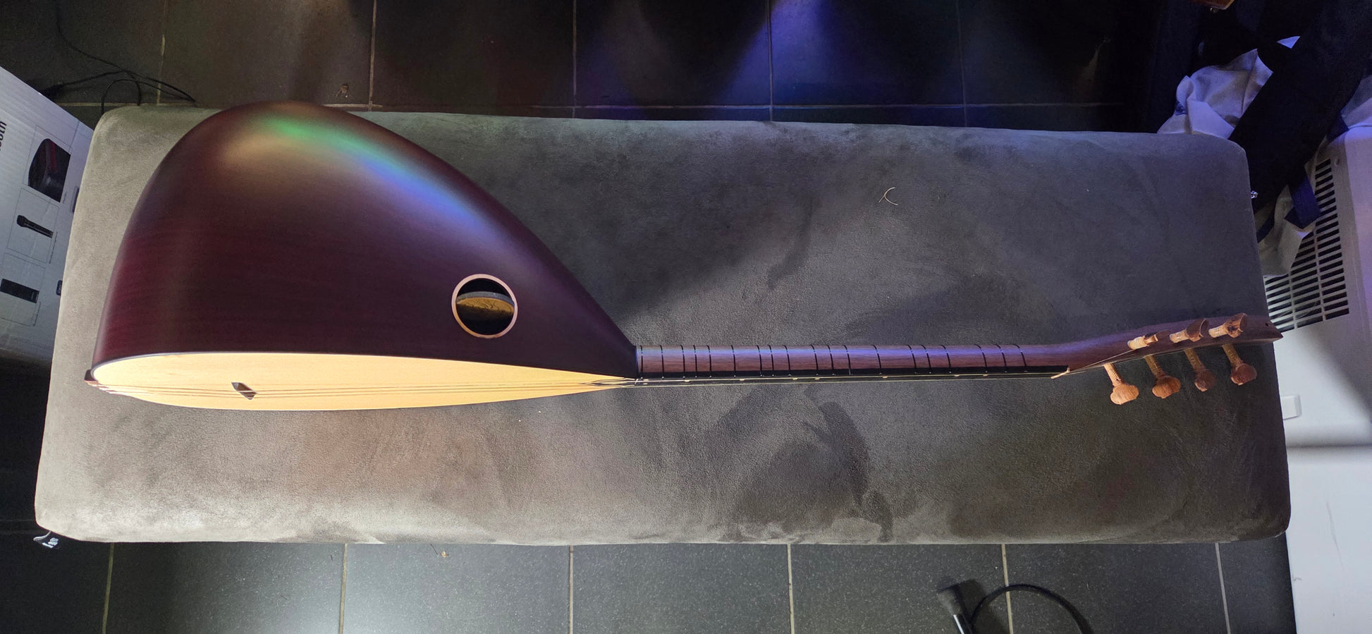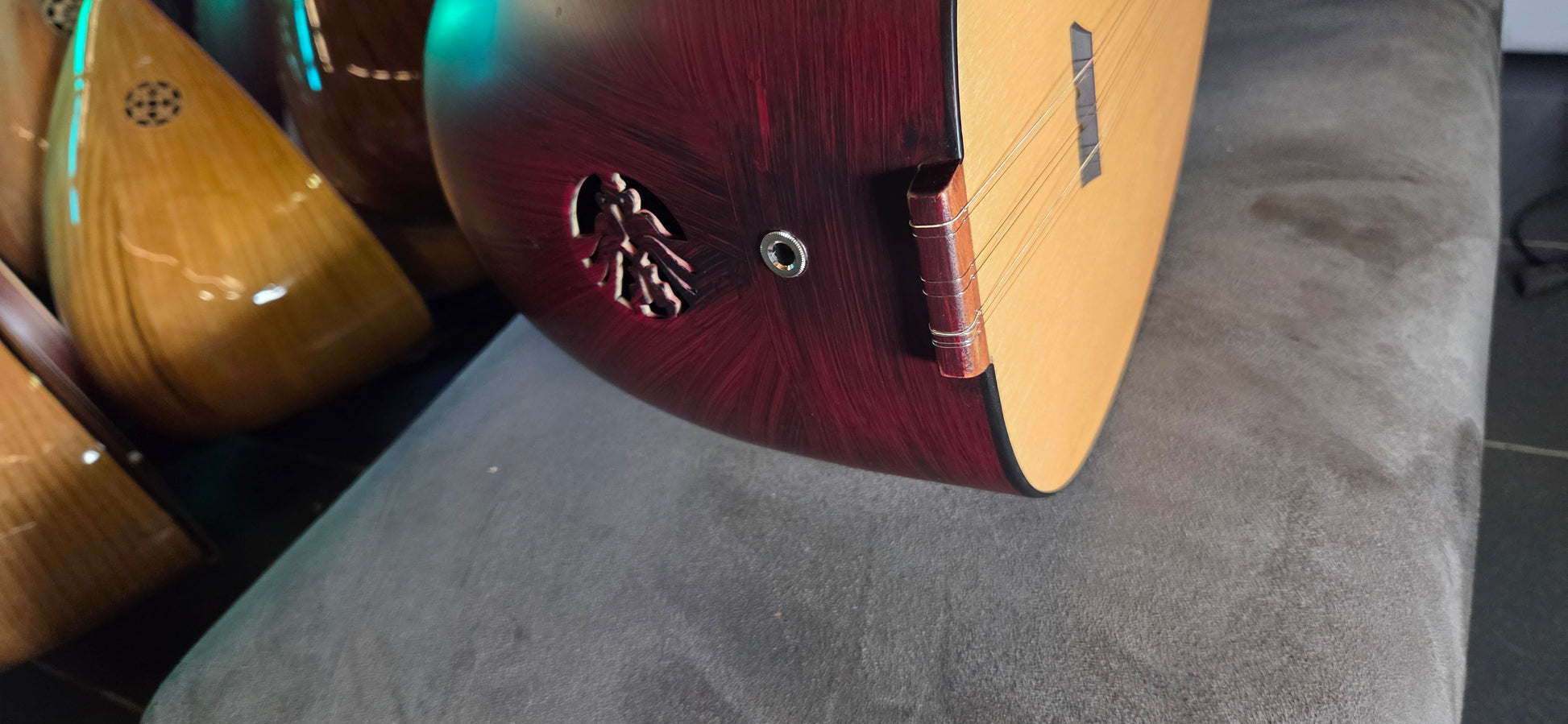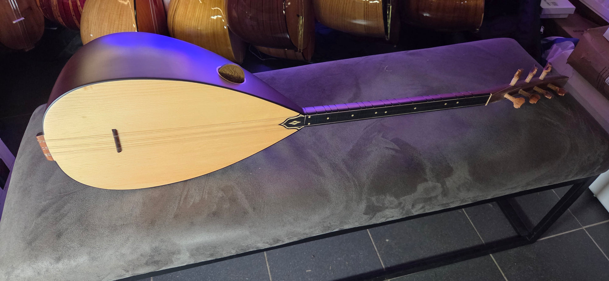 Een saz wordt voor verzending een laatste keer gestemd en gecontroleerd voordat deze wordt ingepakt